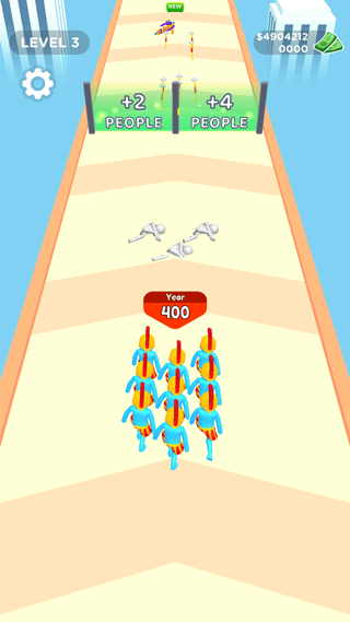 人群进化是一款简单的休闲游戏,英文名叫做:Crowd Evolution。这款游戏玩法比较简单,新手能够轻松上手畅玩,以一条赛道为背景,从一个人进化进化到一群人。在游戏赛道中,你将面临许多的选择,需要计算出怎么选择才对现在的局面最有利的,但是到了后续的关卡,人群行进速度会越来越快,这个时候就非常考验玩家的反应能力和随机应变能力。在游戏中会出现武器拾取,这对通关游戏是大有帮助的,当时通关之后也会获得很多金钱,这些金钱你可以将它使用在游戏商城中购买更加厉害的装备武器,这样你通关就更加简单了。人群进化是一款非常打发时间的小游戏,想玩的小伙伴可以来本站下载畅玩。