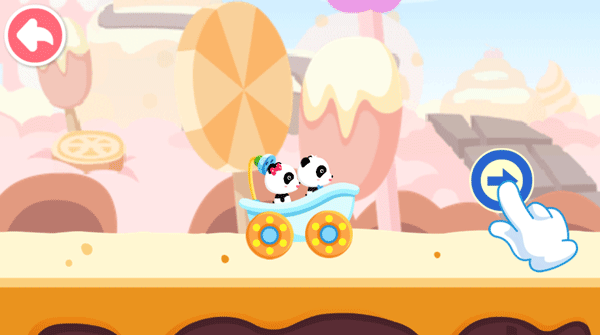 3、选择好小汽车后,就可以出发了,只需要用你的小手指,左右滑动屏幕就能控制小车车的前进和后退了