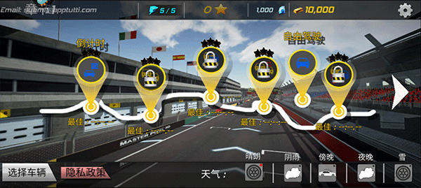 1、您可以随时选择您喜欢的汽车,有许多不同的赛道可供选择;