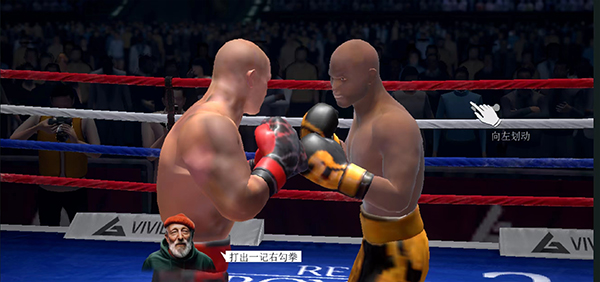 3、在屏幕右侧向上划动,打出一记右上勾拳。