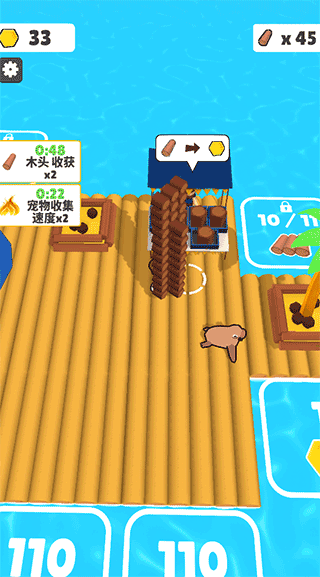 3、新奇有趣的游戏元素。玩家可以中游戏在培养宠物来协助收集,还需小心鲨鱼的突然袭击,新奇有趣的元素给传统的经营玩法增加了多样性。
