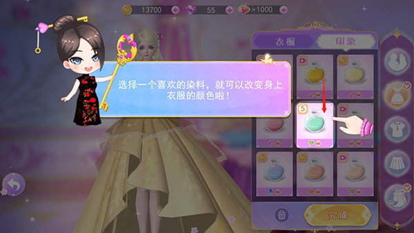 3、然后在印染里面选择一个喜欢的染料,就可以改变身上衣服的颜色;