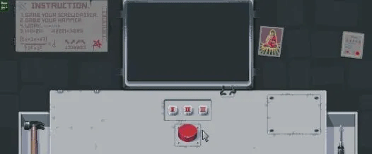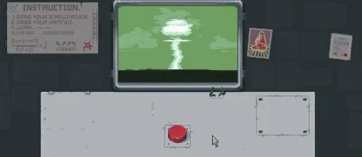 游戏中玩家的任务是操作一个神秘的面板,这个面板上有不同的按钮,当按错按钮时将会触发意想不到的后果,比如发射原子弹,进行核爆,或者自爆。总之玩家的任务就是不断的尝试,尽可能的探索出所有的谜题。