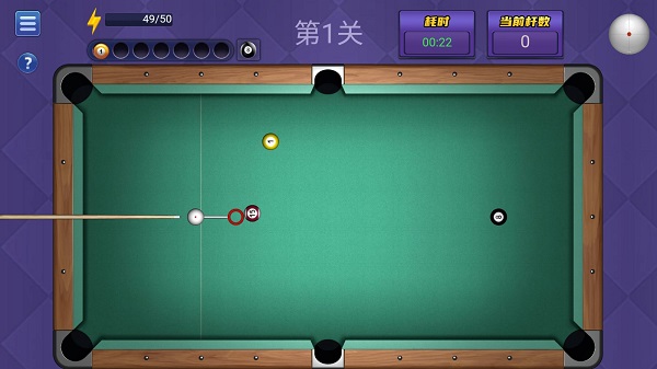 2、挑战难度的经典八球模式,短瞄准线下您还能做到一杆清台么;