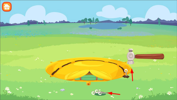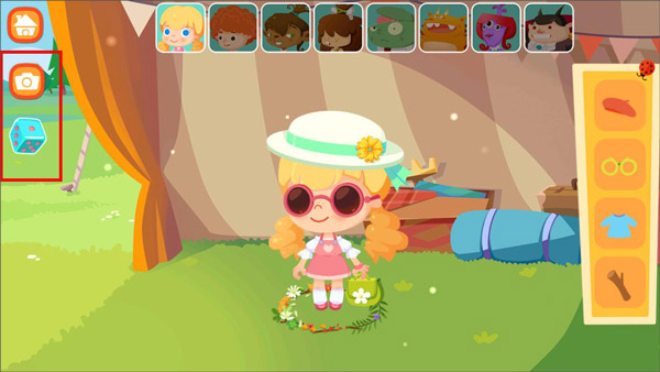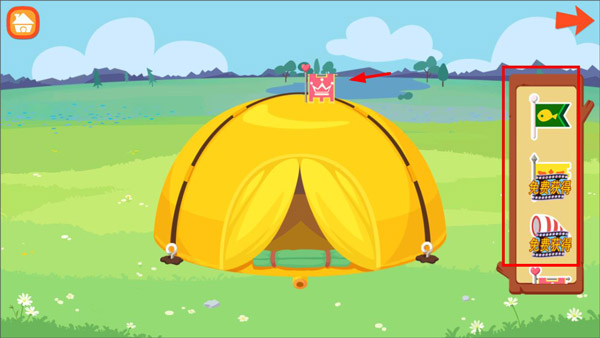 1、打开糖糖郊游记游戏,玩家点击帐篷按钮即可进入搭帐篷游戏页面;