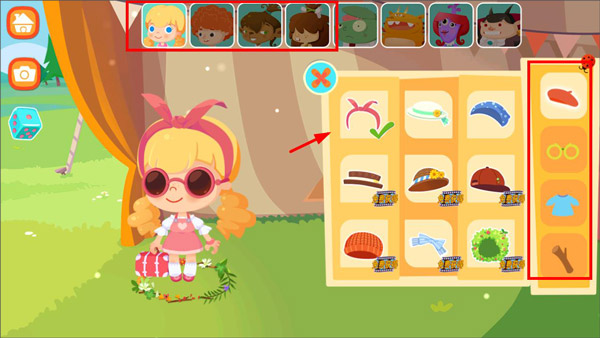 3、玩家根据人物特色给她们换装,展示自己的个性,头饰、眼镜、服装等依次替换;