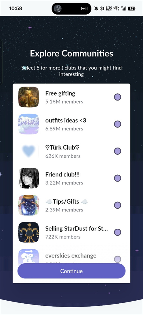 2、然后在这里选择你感兴趣的社区,最少要填五个哦。