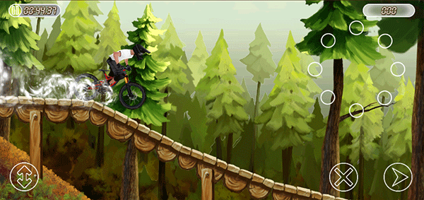 1、山地自行车赛游戏操作非常简单,简单到根本无需新手教程,在屏幕下方的左右两侧分别有刹车和加速按键;