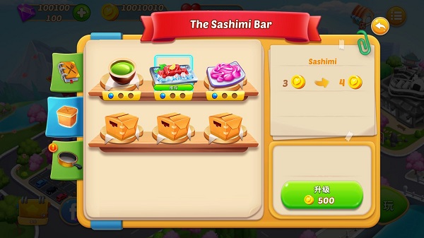 3、想要赚取更多收入,升级炊具是一个不错的方法,在进入关卡之前,升级炊具可以大大提高烹饪效率,在满足客户订单需求的同时,尽可能创造更多连击。