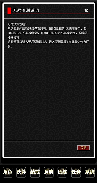 5、每到一定的层数,100,1000,10000,BOSS属性增加的越高,提升自身属性为主要。每次挑战,需要花费一个屠魔令,可以去商店的银币店里购买。银币店里购买相对来说比较亏银币,建议去客房。客房的游商,购买任何东西,都比较便宜,有折扣。