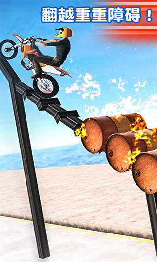 摩托特技极限闯关赛手游是一款刺激疯狂的技巧摩托车游戏,设计了写实的赛车跑道场景,玩家可以选择各种摩托车进行比赛,需要在游戏里进行各种富有挑战性的赛道竞速冒险,控制好自己的车辆,实现现实中不敢尝试的跳跃、前空翻和后空翻等超酷动作。这里到处都是陷阱、到处都是关卡,玩家进入游戏驾驶赛车需要非常小心的跨越,掌握一定的力度与技巧,这样才可以安全落地,反之会车毁人亡哦。