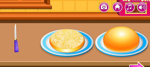 7、然后我们来到右边将汉堡切开;