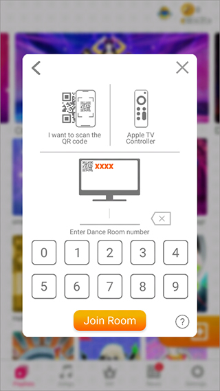 3、在你的Mac上,你应该看到你独特的舞蹈室号码和QR码。当Just Dance Now应用程序提示时,扫描该代码,游戏将连接到您的舞蹈室