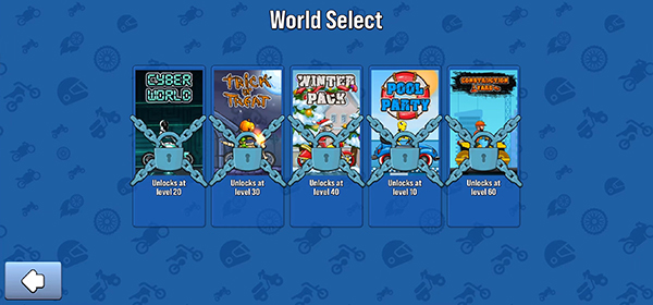 3、卡通的休闲卡通风格带来了极致休闲的感觉,有更多有趣的玩法和摩托车等待玩家解锁;