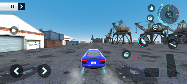 1、进入游戏之后,点击左下角两个左右按钮控制车辆的左右方向;