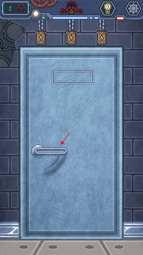 第6关:没刀的时候按红色按钮,直至进度条结束,转动门把手即可。