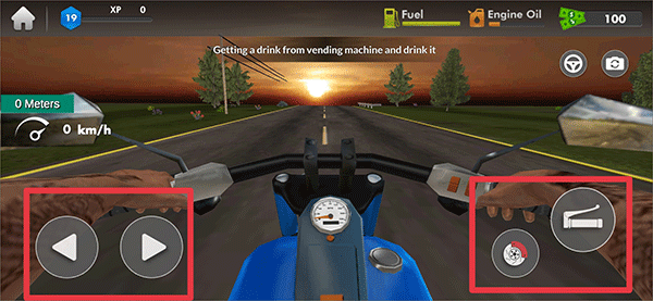 3、游戏开始后通过左右按钮控制摩托车的方向,右边分别为倒退和前进