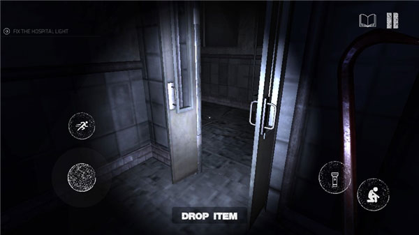 3、左边的按钮可以角色进行移动跳跃,右边的按钮可以打开手电,控制角色蹲下等。