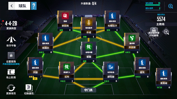 2、一个最强势的阵容,每一个位置都需要拥有,一场对局可以上场11名球员,那么中锋、边锋、前卫、中卫、守门员都是要有的,玩家需要合理的进行选择,每一个位置都需要有固定的球员,而且要知道像世界比较知名的一些球员,我们都是可以快速获取的,强大的阵容并不需要玩家去适应,而且球员与球员之间还会有一定的配合默契度,如果配合默契度不达标的话,那么对局也很难发挥出非常精彩的表现。