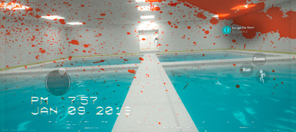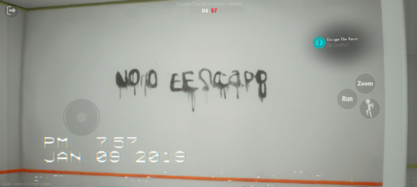 2、游戏内如图,屏幕左边控制移动、右边则为奔跑、跳跃、放大观看等键位,玩家需在这个密室中找寻线索;