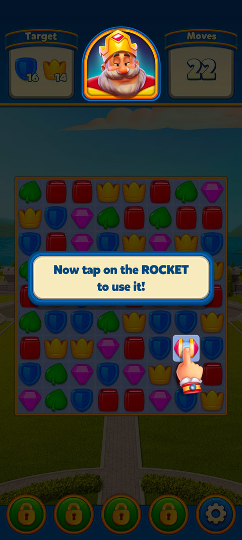 皇家比赛官方正版是一款全新的休闲消除手游,英文叫作:Royal Match,该游戏采用Q版卡通画风绘制,玩家在这里将通过三消玩法进行闯关,闯关成功后还可获得解锁新区域的金币,以此装饰和升级罗伯特国王的城堡。而在玩法上,游戏则以竖屏点击操作的闯关玩法为主,玩家需要将三个相同颜色的方块放在同一列即可完成消除,而且游戏上方会显示通关要求,玩家需根据要求消灭相应的方块。
