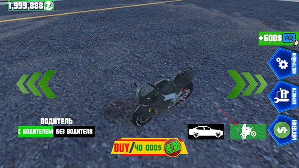 3、当然,除了汽车你还可以选择摩托车,如图示,点击右下角可以选择摩托车,然后点击页面底部的【BUY】按钮,就可以购买解锁使用了;