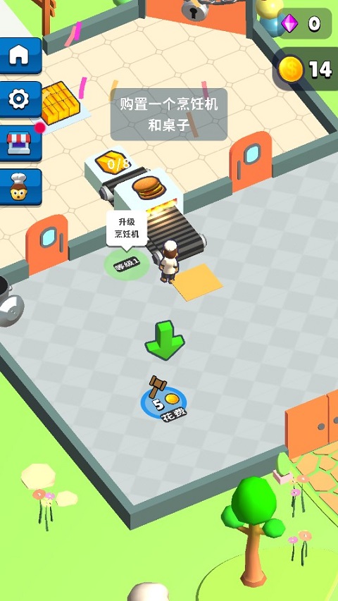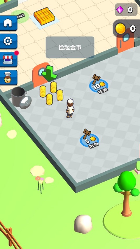 你继承了一座荒芜的美食小岛,作为渴望成为美食大亨的你当然希望用美食吸引各方食客壮大你的美食小岛,于是你开始一步步建设餐厅。前期你需要购买一些设施使餐厅拥有顾客和餐品。