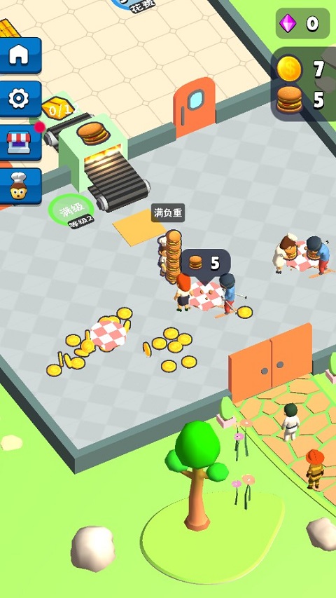 3、接下来你可以将餐品堆叠在面前一次性完成多个订单,也可以将原材料放到美食制作机里以便美食及时出锅,也不要忘记给客人们结账哦。