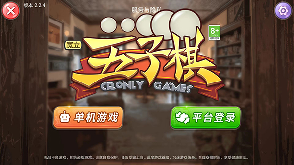 1、打开宽立五子棋游戏,进入游戏主界面,分为【单机游戏】和【平台登录】选项,玩家可根据需求选择,这里以【单机游戏】为例,