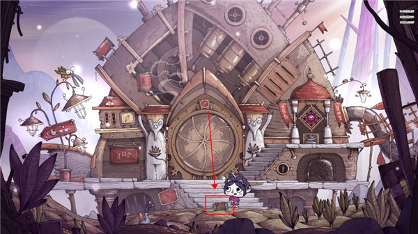 7、往右走,拖动打开所有包围直升机的巨大花瓣。然后调整投石机关,使石头投射在3个藏有黄色虫子的地方。最后切换角色为小女孩,进入直升机,前往下一个星球