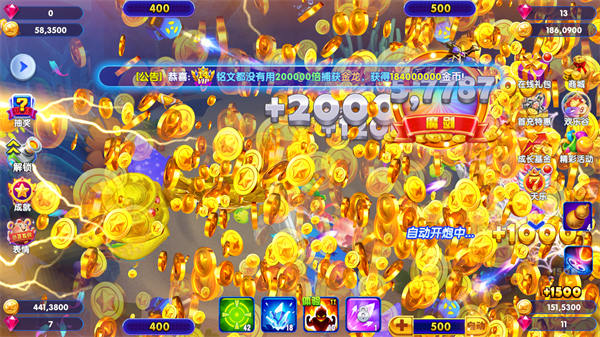 3、释放出奖金鱼后,要集中火力捕条奖金鱼,不要三心二意的漫无目的地攻击,一是浪费火力和金币,二是奖金鱼也随时可能溜走,到时候会赔了夫人又折兵,得不偿失了。