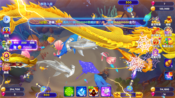 经典街机捕鱼全新体验,超高爆率,让您轻松秒杀,一炮上亿不是梦。