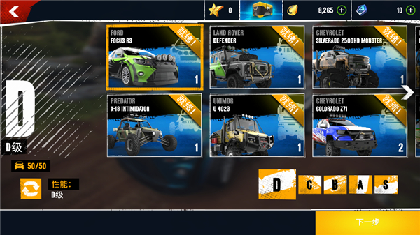 5、调整好自己车辆的性能之后,点击下一步;