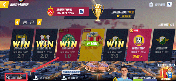 3、在联赛界面中,点击左下角球队管理