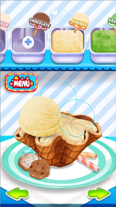 冰淇淋沙龙游戏里提供给玩家冰淇淋制作的材料和步骤,让玩家即使没有工具材料也可以体验制作美食的乐趣。玩家可以混搭不同口味的冰淇淋,添加不同的冰淇淋装饰,让玩家的冰淇淋看起来更美味,色彩鲜艳的搭配为玩家带来清新的视觉效果,不同的做法能有不同的感觉。玩家在游戏中将真实体验冰淇淋的制作过程,快来下载试试吧。