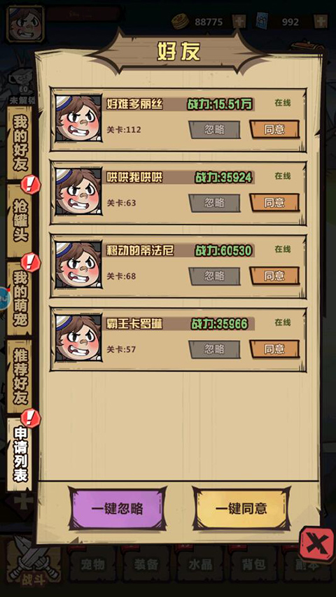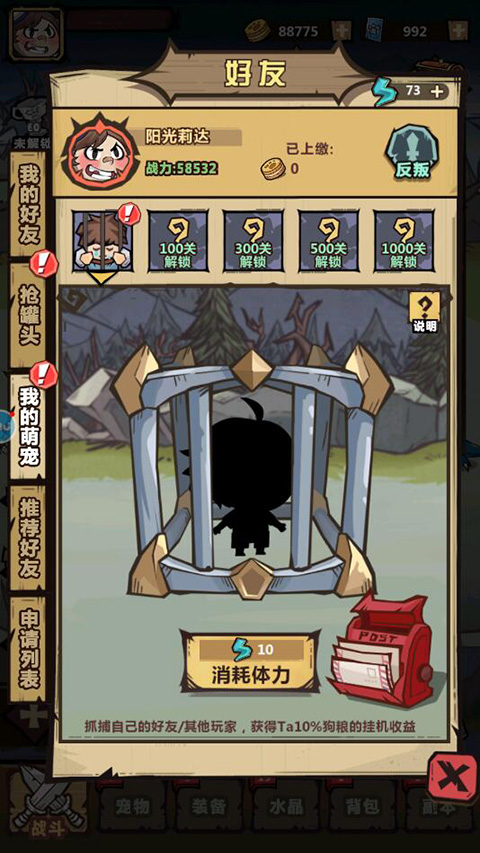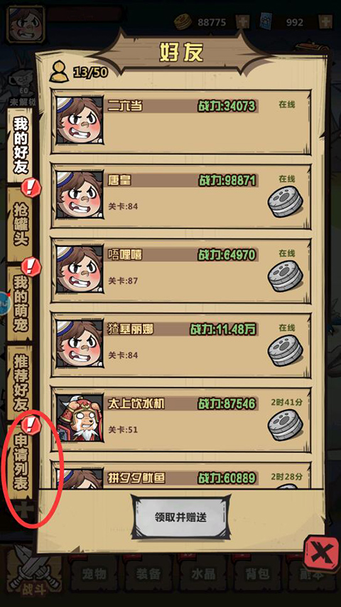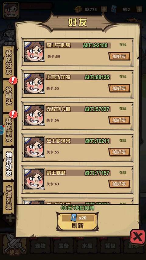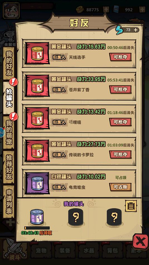 6、添加好友后就可以参与抢罐头玩法了,如下图,我们可以挑选战力低的好友进行抢夺