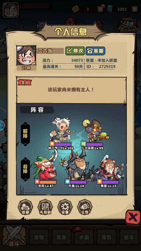 3、接下来进入到宠物界面,对已经获取的神将进行升级