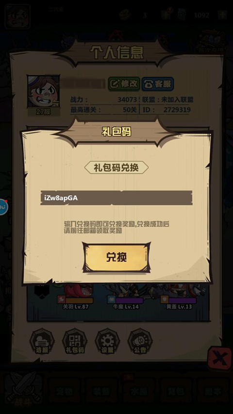 3、输入你获取到的礼包码,小编这里为大家整理了两个可以使用的:iZw8apGA、TnZf1hV9
