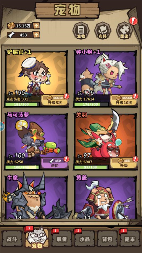 3、接下来进入到宠物界面,对已经获取的神将进行升级