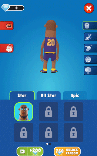 3、有非常多不同的人物角色,等待着玩家自由的进行选择,不同的人物角色有着不同的人物属性,体验不一样的投篮乐趣。