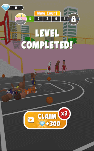 2、拖动角色起飞,瞄准篮筐,将篮球扔进篮筐,获得相应分数。