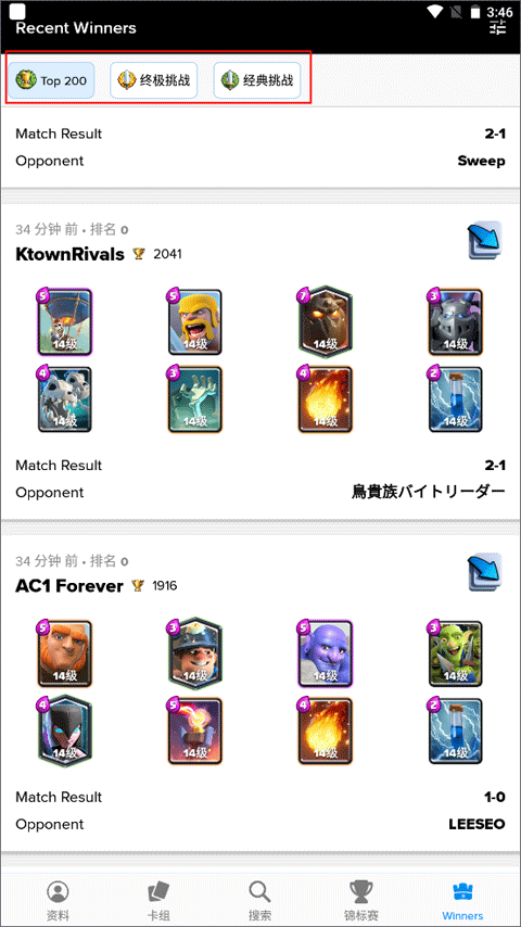 这里提供了前200名、终极挑战以及经典挑战的获胜者名单信息。