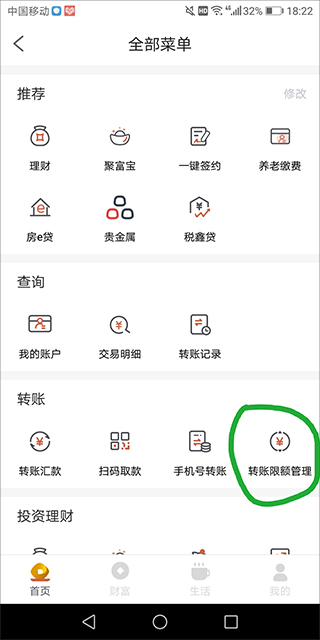 在打开的新页面中点击【转账限额管理】进行限额修改即可