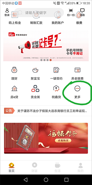转账限额一般是一次最高5万,但用户可以带领相关证件到柜台办理限额申请,通过后即可打开大连农商银行手机银行app进入首页点击【更多】