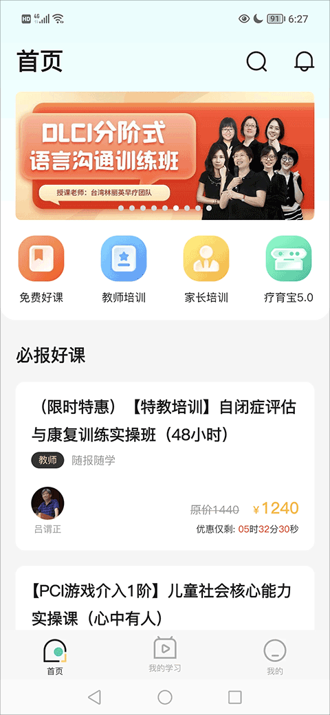 你好疗育课堂app是专门为特殊儿童设计和开发的一款线上学习平台,已经汇集了国内外知名机构、行业专家合作,为用户提供有广泛的直播、视频、音频等内容,旨在帮助特殊儿童家庭获得全面的、非零散的疗育知识和技能,助力特殊儿童成长。软件可以在这里通过免费、付费课程来全面分析孩子的缺陷与不足,让孩子在正确的指导下茁壮成长起来,针对孩子的实时情况,也会让家长通过app的形式实时注意自己孩子的情况,希望孩子走出自闭,有需要的家长可以免费下载。