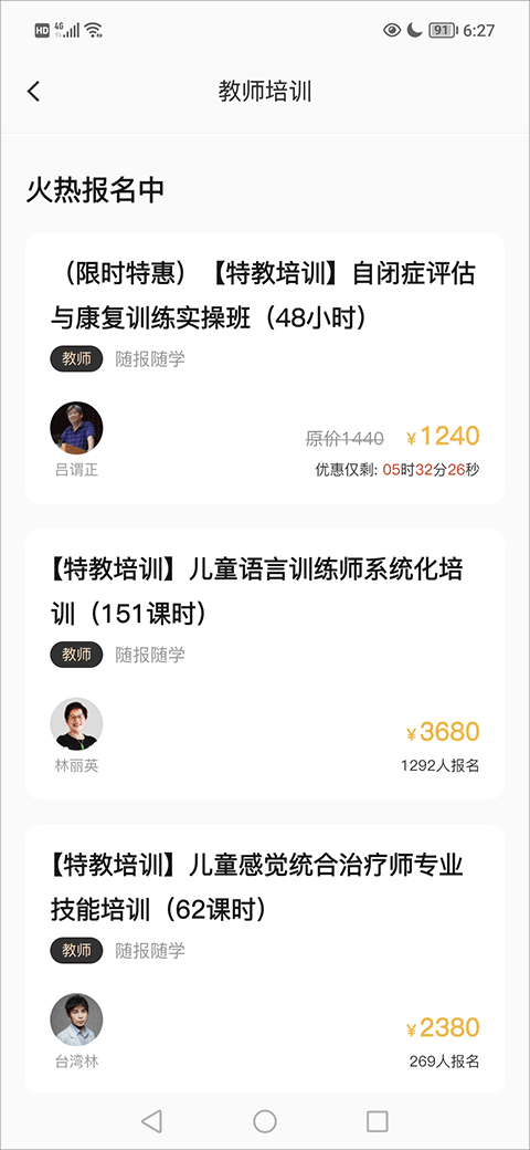2、然后,在“教师培训”功能界面找到并点击任意活动;