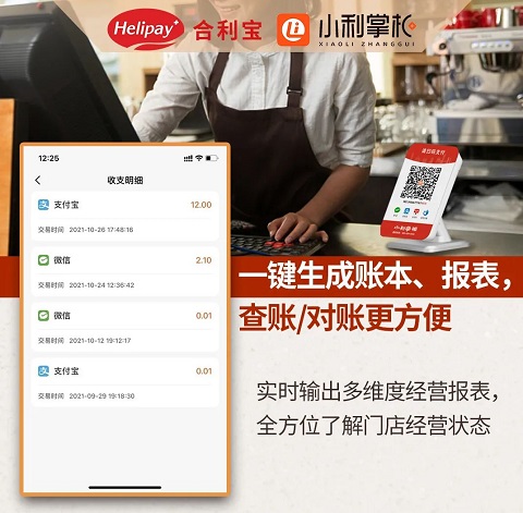搭配小利之家APP使用,轻松实现记账对账,还能生成各类经营报表,进行多维度经营分析,帮助商户全方位掌握门店经营状况。