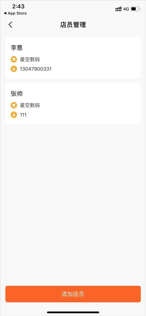 Tips:创建的店员账号密码会以短信的形式发送到掌柜的手机号码中