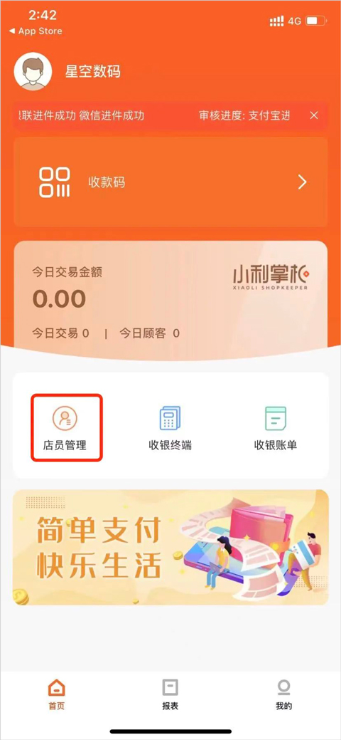 小利掌柜app是针对中小微商户日常运营中的痛点所推出的一款简单高效的收银管理工具,集移动收款、账务查询、收银员与门店管理等一站式数字经营服务于一体,旨在让中小微商户能够以低成本享受到便捷的技术服务,让生意经营更简单、更容易。