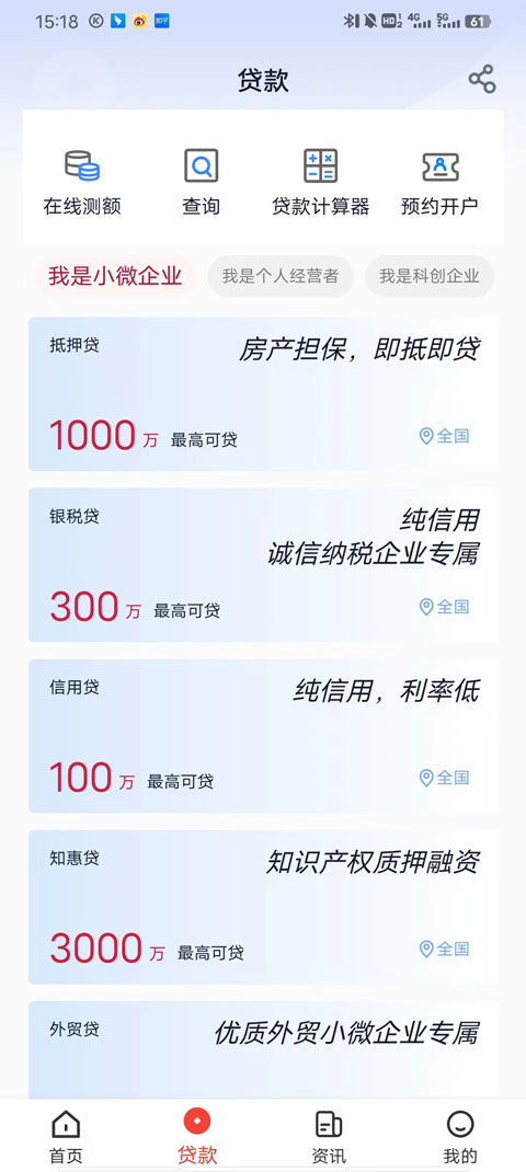 中国银行惠如愿除了拥有丰富的金融产品以外,还提供了在线测额、在线测额、配套贷款计算器、在线预约开户、税务数据授权等工具,旨在给用户提供提供综合化、便捷化的融资体验。